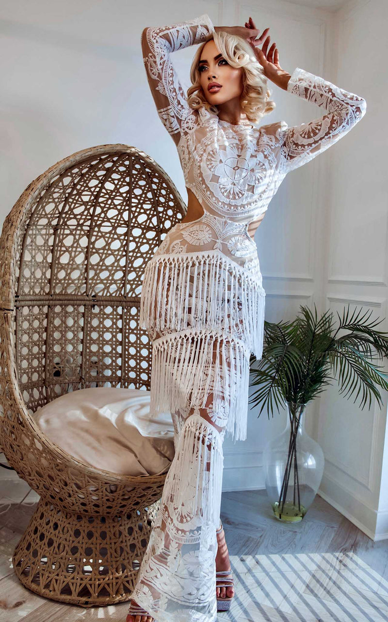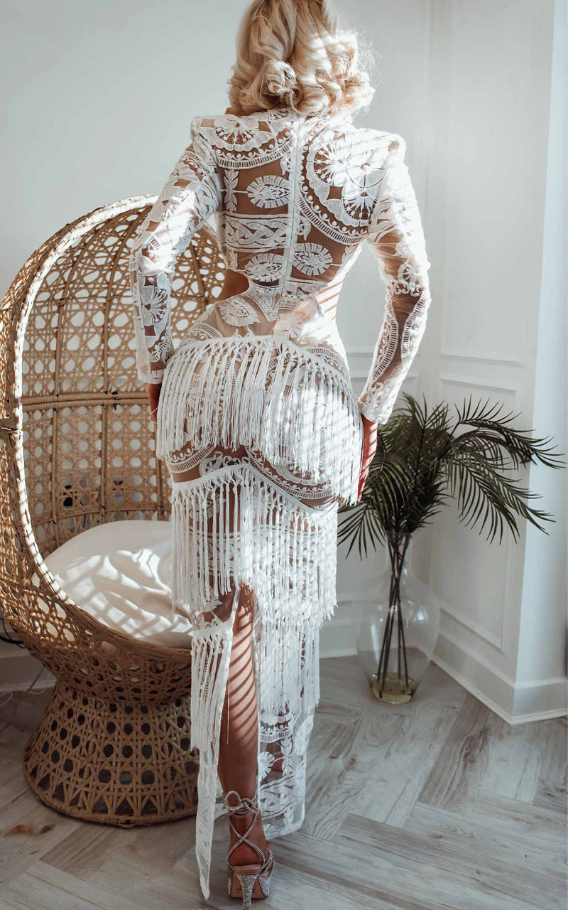Enamoured Premium White Lace Side Cuts & Shoulder Pads Fringed