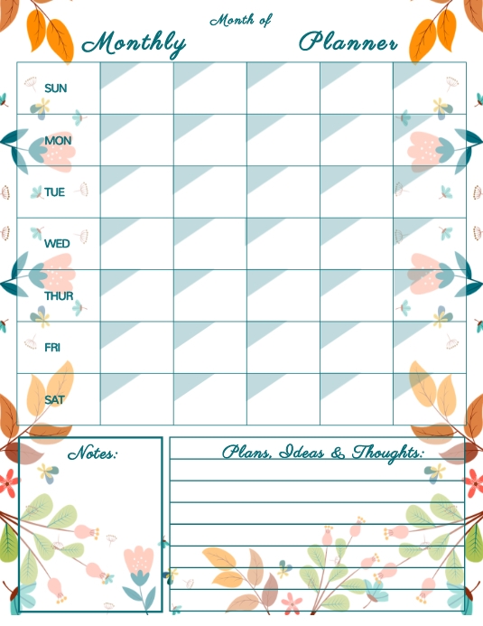 Blank Monthly Calendar Planner for Any Month Template | PosterMyWall